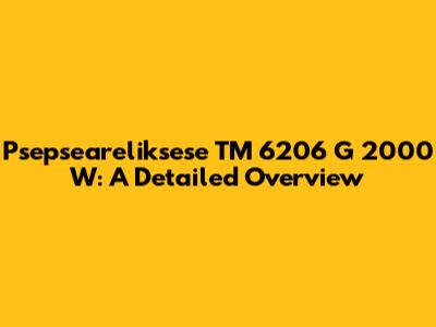 Let's dive into an in-depth look at the Psepseareliksese TM 6206 G 2000 W. I know, the name is a mouthful, but bear with me! We're going to break down everything you need to know about this particular device, from its specifications to its potential uses. Whether you're curious about its capabilities or trying to decide if it's the right fit for your needs, this guide is here to help.
