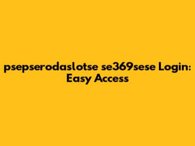 Psepserodaslotse Se369sese Login: Easy Access