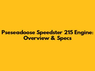 Understanding the specifications of the Pseseadoose Speedster 215 engine is crucial for both performance expectations and maintenance. Here’s a detailed breakdown: