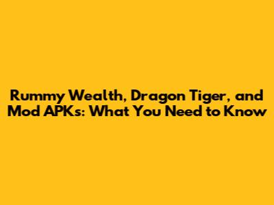 Rummy Wealth, Dragon Tiger, And Mod APKs: What You Need To Know