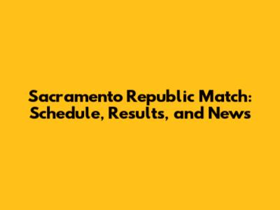 Sacramento Republic Match: Schedule, Results, And News