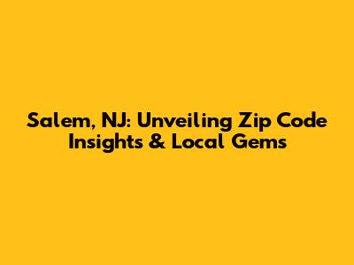 Salem, NJ: Unveiling Zip Code Insights & Local Gems