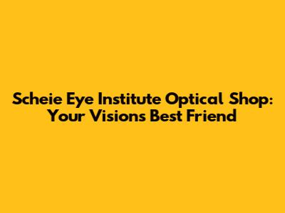 Hey everyone! Ever found yourself squinting at the world, wishing things were a little clearer? Well, if you're in the Philly area, or even if you're not and are curious, let me tell you about a place that's all about making your vision the best it can be: the Scheie Eye Institute Optical Shop. This place isn't just your average glasses store; it's a one-stop shop for all things vision-related, with a team of experts dedicated to helping you see the world in its full glory. We're going to dive deep into what makes the Scheie Eye Institute Optical Shop so special, covering everything from the services they offer to why you should consider them for your next pair of specs or contact lenses. So, grab your virtual seat and let's get started!