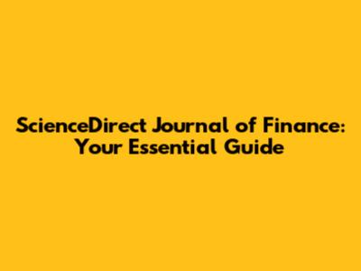 ScienceDirect Journal Of Finance: Your Essential Guide