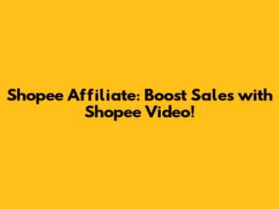 Shopee Affiliate: Boost Sales With Shopee Video!