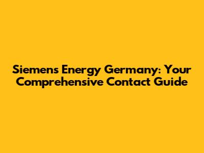 Getting in Touch: Siemens Energy Germany Contact Details