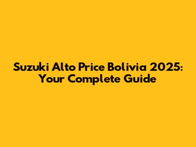 Suzuki Alto Price Bolivia 2025: What You Need To Know