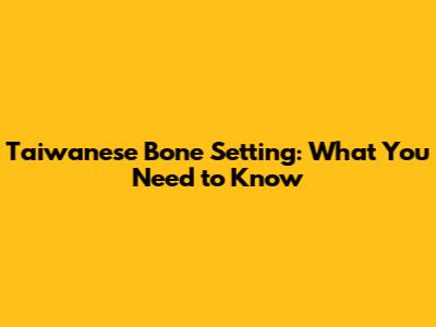 Is Taiwanese Bone Setting Right for You?