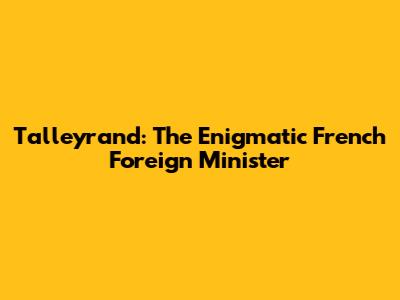 Talleyrand: The Enigmatic French Foreign Minister