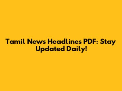 Tamil News Headlines PDF: Stay Updated Daily!