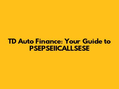 TD Auto Finance: Your Guide To PSEPSEIICALLSESE