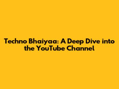 Techno Bhaiyaa: YouTube Channel Overview