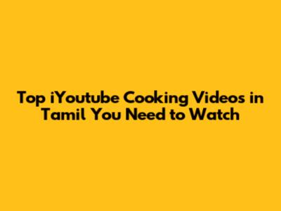 Why iYoutube is Your Go-To for Tamil Cooking