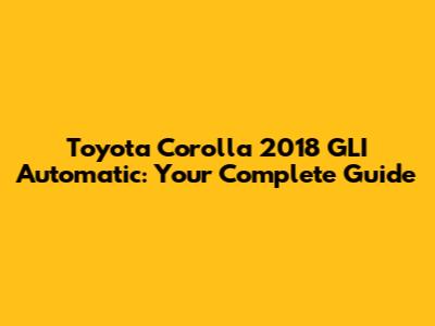 Toyota Corolla 2018 GLI Automatic: A Comprehensive Guide