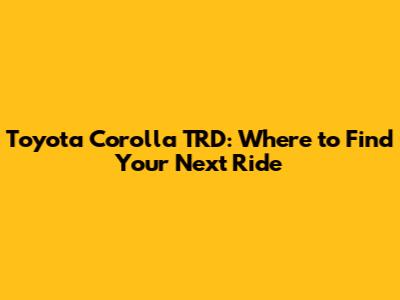 Toyota Corolla TRD: Where To Find Your Next Ride