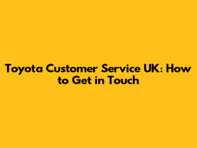 Toyota Customer Service UK: How To Get In Touch