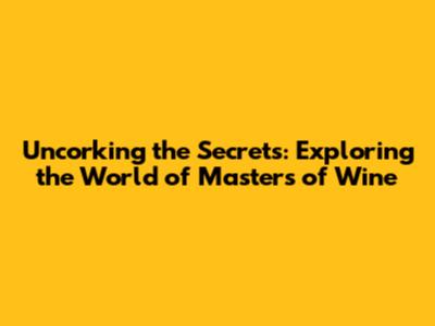 Uncorking The Secrets: Exploring The World Of Masters Of Wine