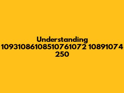 Hey guys! Ever stumbled upon something that looks like a jumble of numbers and letters and wondered what on earth it means? Well, today we're diving deep into understanding the mysterious "10931086108510761072 10891074 250." Sounds like a secret code, right? In a way, it kind of is. This article will break down what this could possibly represent, explore different interpretations, and provide a clear understanding. Let's get started!