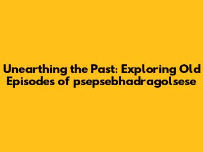 Unearthing The Past: Exploring Old Episodes Of Psepsebhadragolsese
