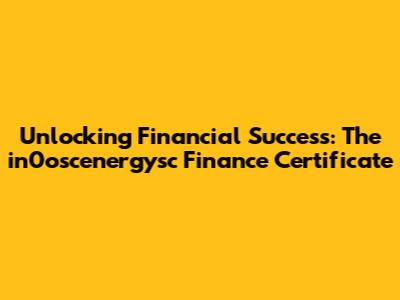 Unlocking Financial Success: The In0oscenergysc Finance Certificate