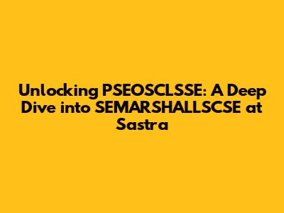 Hey guys! Ever stumbled upon a seemingly cryptic term and wondered what it's all about? Today, we're cracking the code on "PSEOSCLSSE SEMARSHALLSCSE Sastra." This might sound like alphabet soup, but trust me, it's worth understanding, especially if you're connected to Sastra University or interested in the fascinating world of computer science and software engineering. We'll break down each component, explore its significance, and paint a clear picture of how they all fit together within the Sastra University context. So, buckle up and let's dive in!