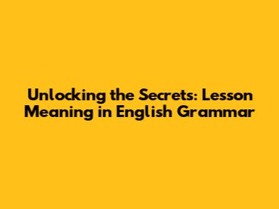 Unlocking The Secrets: Lesson Meaning In English Grammar