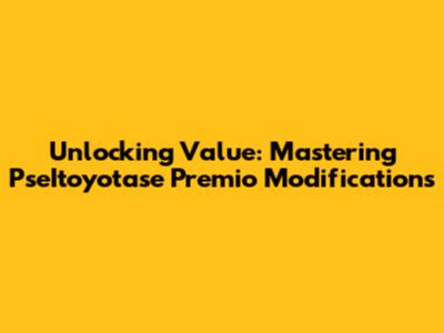 Unlocking Value: Mastering PseItoyotase Premio Modifications