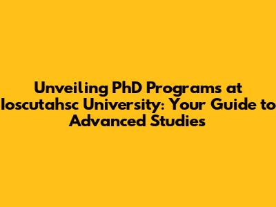 Unlocking Your Future: PhD Programs At Ioscutahsc University