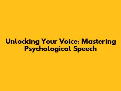 Unlocking Your Voice: Mastering Psychological Speech