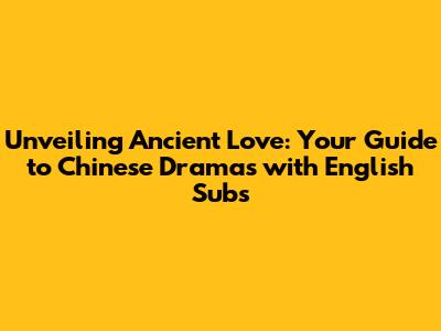 Unveiling Ancient Love: Your Guide To Chinese Dramas With English Subs