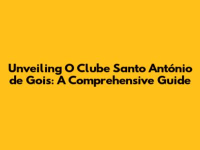 Unveiling O Clube Santo António De Gois: A Comprehensive Guide