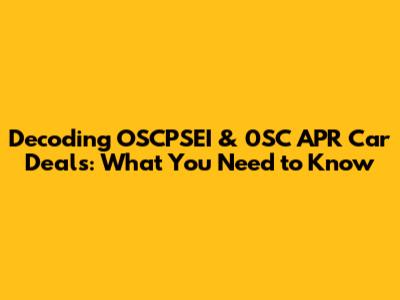 Hey everyone! Ever stumbled upon OSCPSEI, 0SC, or APR when you're browsing car deals and felt a bit lost? Don't sweat it – you're not alone! These acronyms and terms are super common in the automotive world, but they can be a bit confusing if you're not familiar with them. That's why we're going to break down OSCPSEI, 0SC, and APR in the context of car deals, making sure you understand what they mean and how they affect your purchase. Understanding these terms is crucial to navigating the car-buying process successfully. It helps you make informed decisions, compare offers effectively, and ultimately, save money. So, let's dive in and demystify these acronyms, shall we?