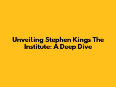 Unveiling Stephen King's The Institute: A Deep Dive