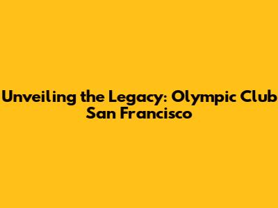 Unveiling The Legacy: Olympic Club San Francisco