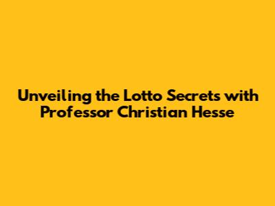 Unveiling The Lotto Secrets With Professor Christian Hesse