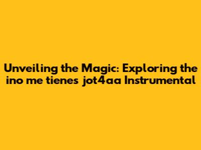 Unveiling The Magic: Exploring The 'ino Me Tienes Jot4aa' Instrumental