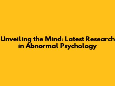Unveiling The Mind: Latest Research In Abnormal Psychology