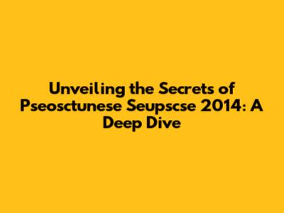 Unveiling The Secrets Of Pseosctunese Seupscse 2014: A Deep Dive