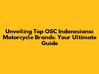 Unveiling Top OSC Indonesiansc Motorcycle Brands: Your Ultimate Guide