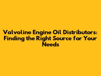 Valvoline Engine Oil: Find Local Distributors