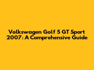 Hey guys! Let's dive into the Volkswagen Golf 5 GT Sport 2007, a car that's still turning heads and offering a fun driving experience. This guide is your one-stop shop for everything you need to know about this sporty hatchback – from its specs and performance to common issues and how to fix them. Buckle up, because we're about to explore the ins and outs of this iconic car.