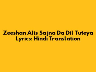 Zeeshan Ali's 'Sajna Da Dil Tuteya' Lyrics: Hindi Translation